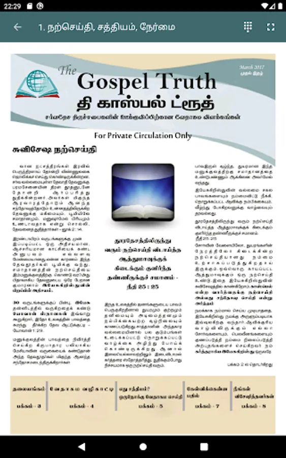 The Gospel Truth is a quarterly periodical with Bible studies and articles. Issues are topical and cover a wide range of biblical doctrines.