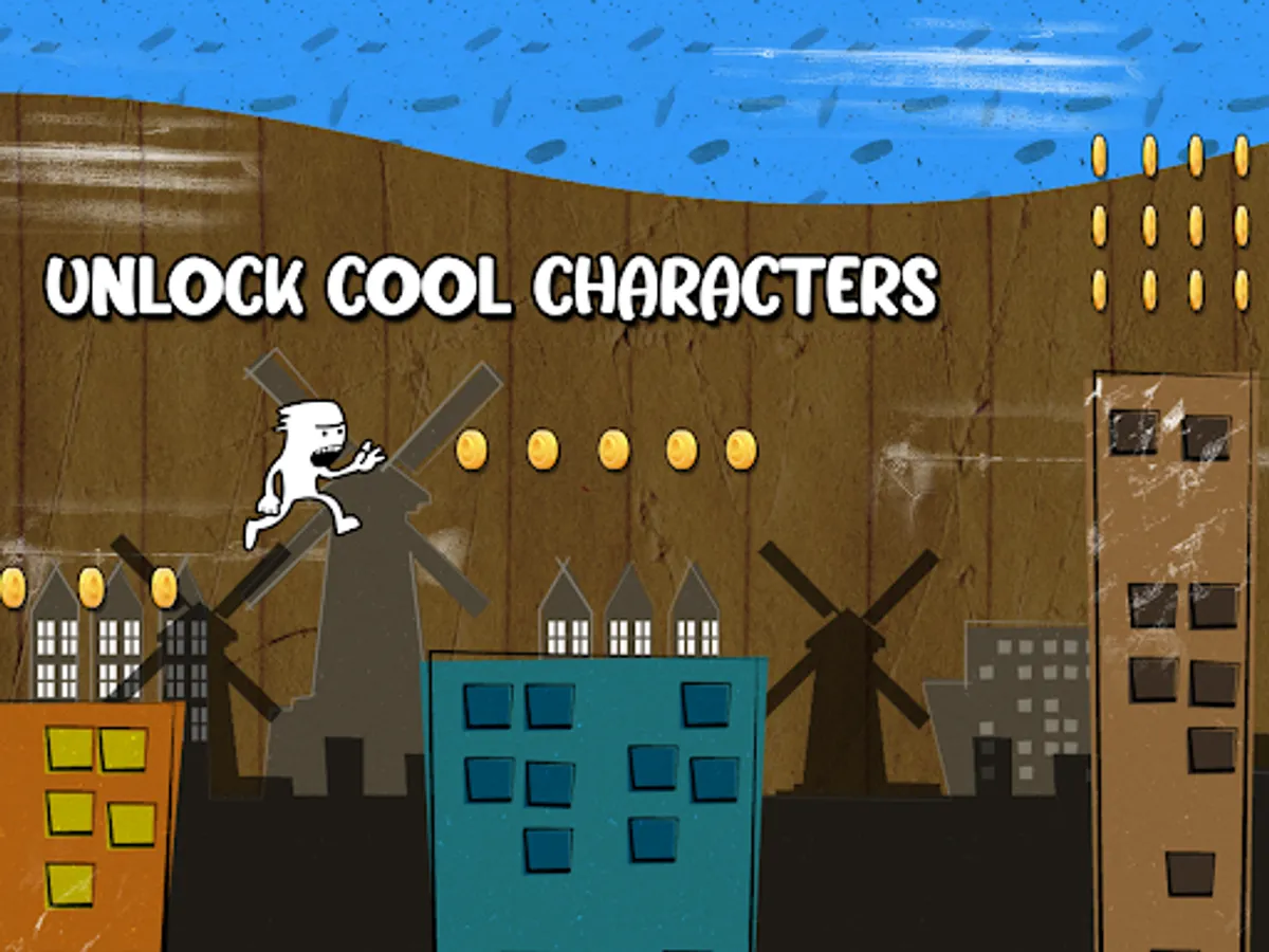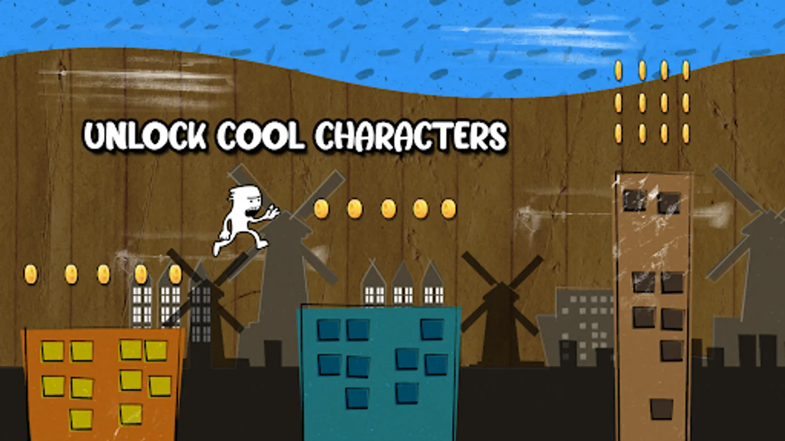 Jump from building to building, leaping over obstacles and enemies as you collect coins and gems.