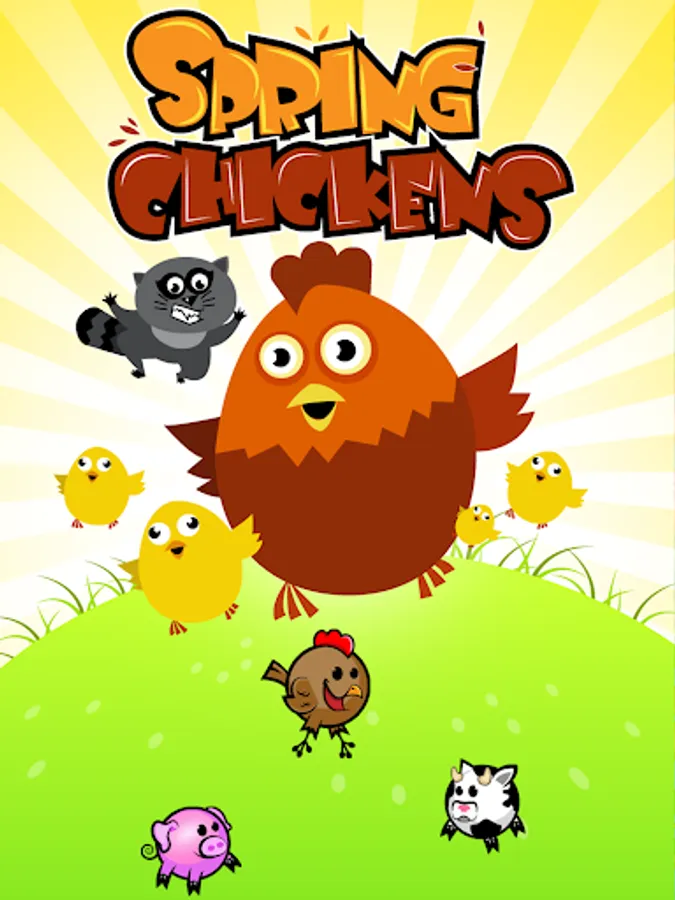 Spring Chickens is a fun game of farm animals bouncing through the air in a desperate attempt to get off the ranch - jump from platform to platform collecting coins and gems... avoiding enemies and sharp farm equipment.