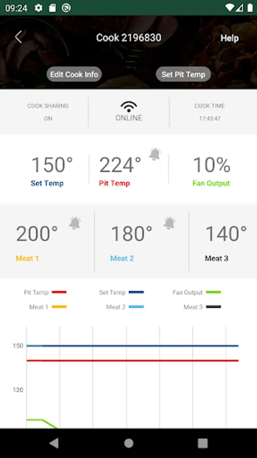 Remotely manage and monitor cooking temperatures, monitor the temperature of your food, view graphs of your cooks and receive alerts when your cook is finished or when the EGG temperature is too high or low.