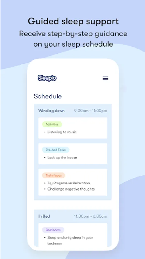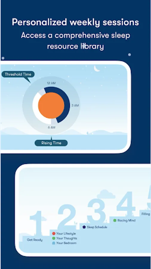 - A personalized program of clinically proven cognitive and behavioral techniques, designed to get your sleep schedule, thoughts, and lifestyle into shape over six tailored sessions.
