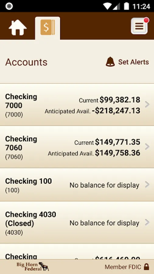 There is no fee from Big Horn Federal. Connectivity and usage rates may apply, contact your wireless service provider for more details.