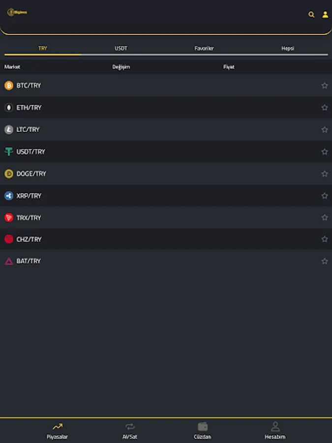 You can view all parities on the prices page; You can access hourly, daily, monthly and yearly charts and evaluate the best buying and selling opportunities by creating a price alert.