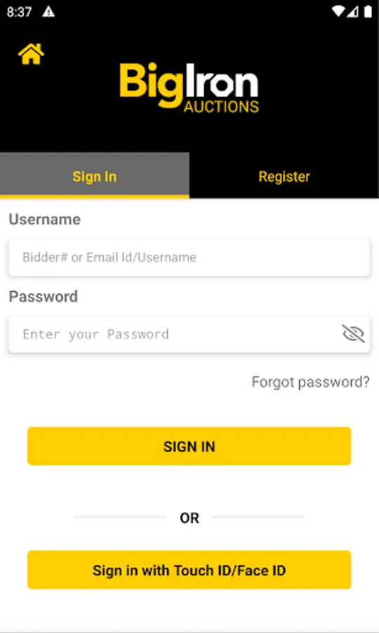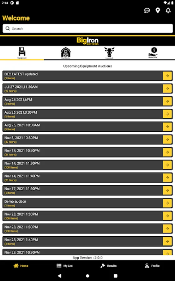 The BigIron auction app with new enhancement of BigIron App provides the user flexibility to access the upcoming auction, Search for the item based on the Equipment categories type and Refine by features without login to the bidder account and provide the suggestion of the app.