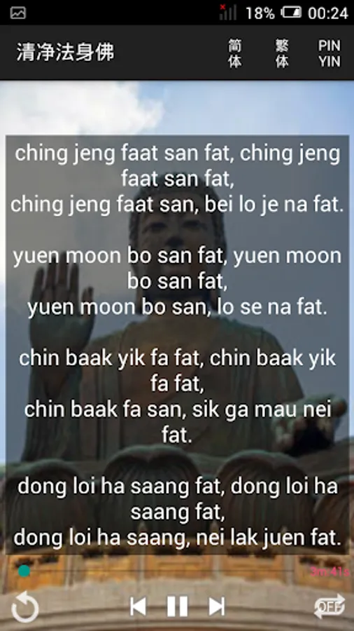 Lets chant or recite Buddhist scriptures together ! ! ! ! This program is equipped with a beautiful melody and lyrics chant . The main purpose of this program is to facilitate the Buddhists all over the world whenever and wherever you can, do not need to recite a prayer book or CD.