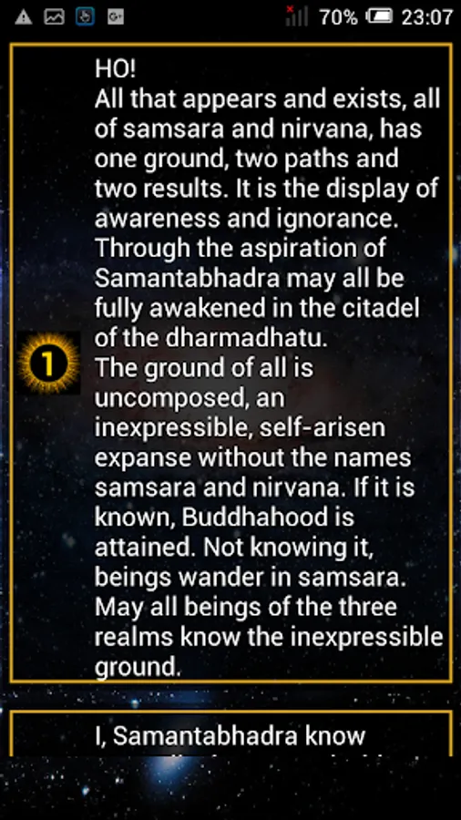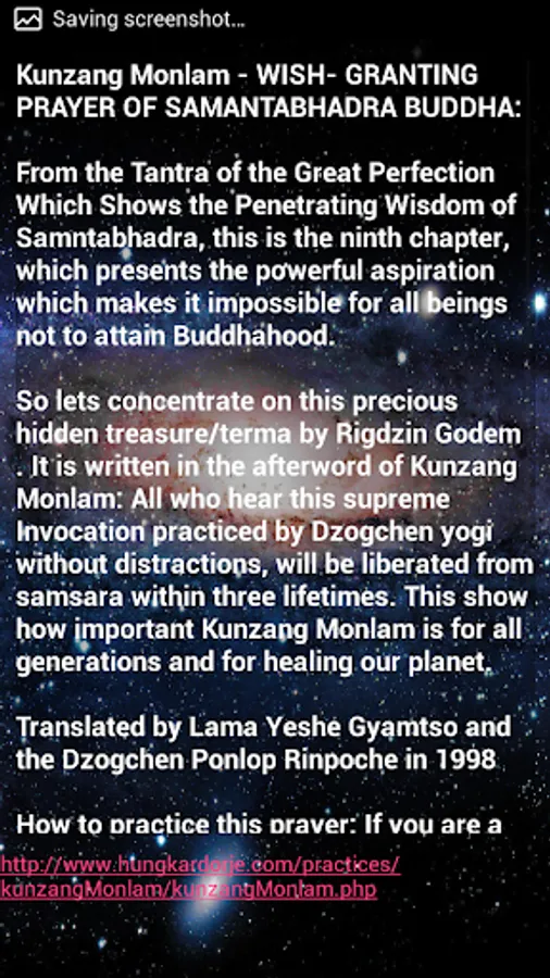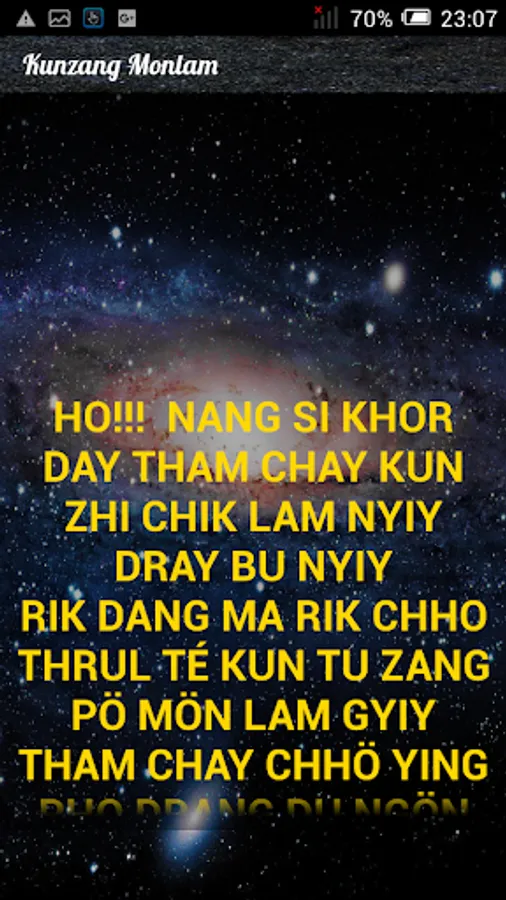 Kunzang Monlam(or Great Perfection Prayer of Kuntuzangpo) - The Prayer of Kuntuzangpo is a famous Dzogchen aspiration prayer from the Gongpa Zangthal. It is to be recited especially during a solar or lunar eclipse, an earthquake or at the solstices.