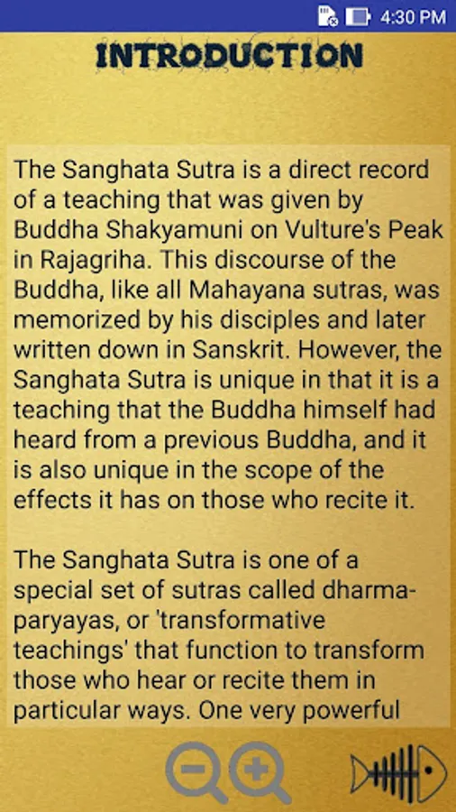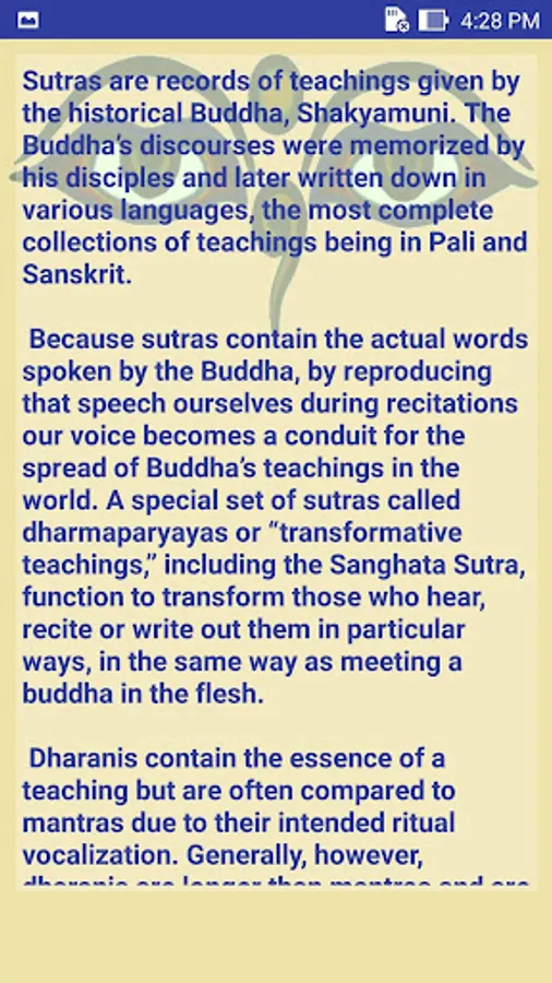 This app currently contains only Sanghata Sutra and Long Life Sutra. Be patient, many more to come...