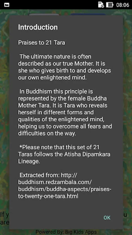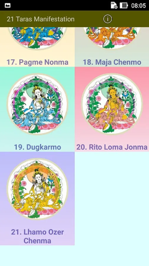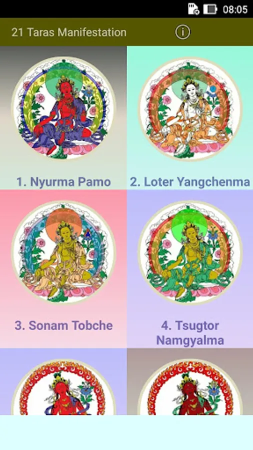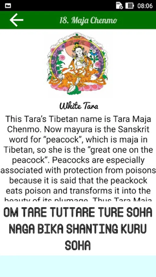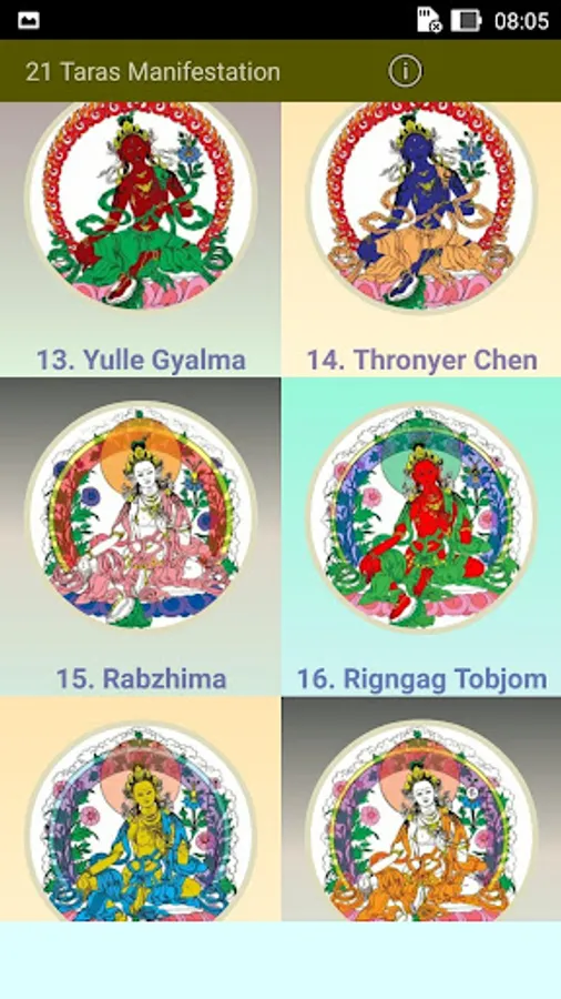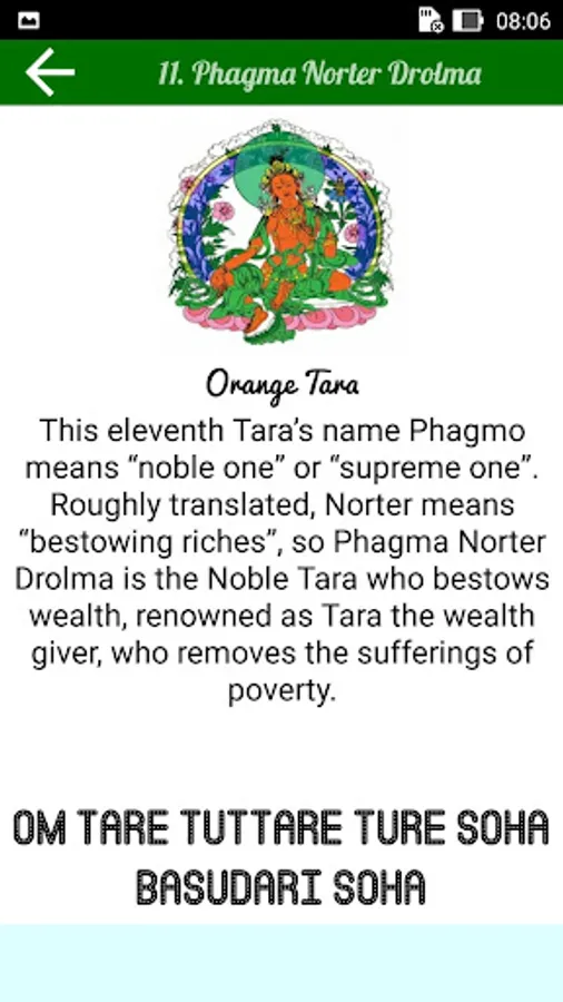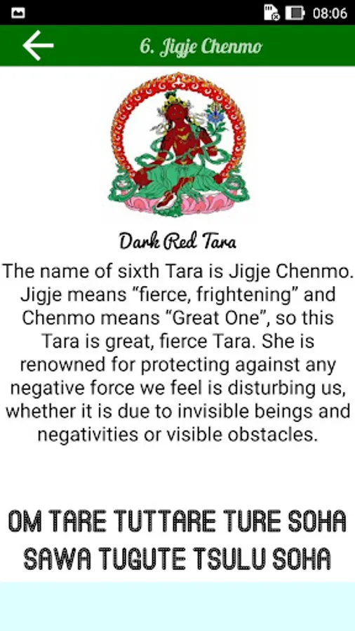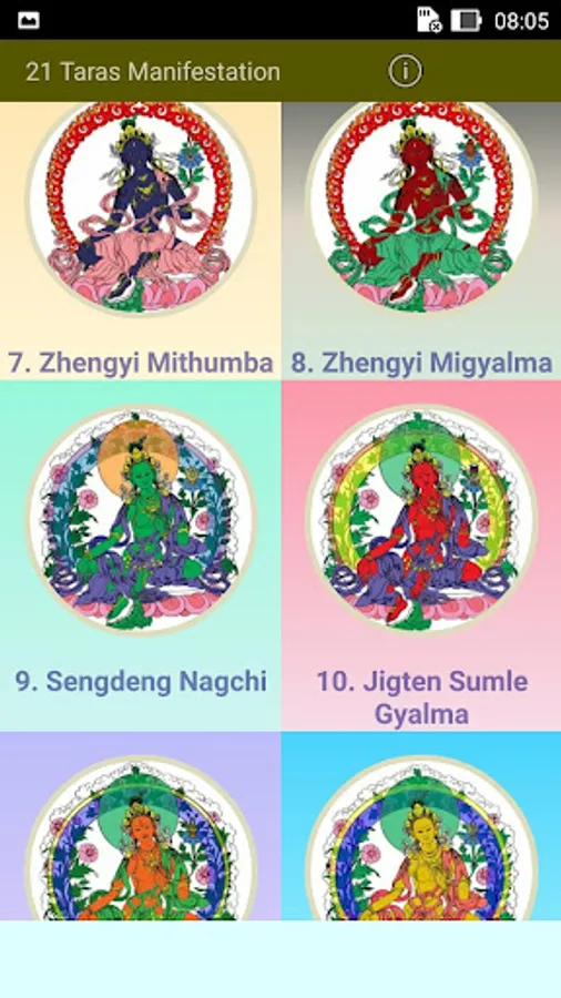 This app explains briefly all the 21 emanations of Tara. Recite praises to the 21 Taras is the fastest way to actualize your wishes. Tara imbues you with matriachal energy, as long as you motivation is good, she will look after you. But you must have complete trust in Tara.