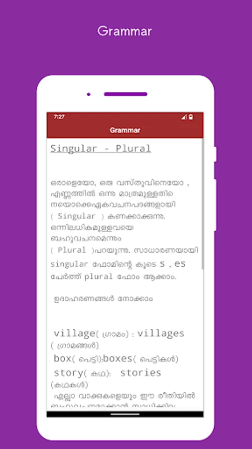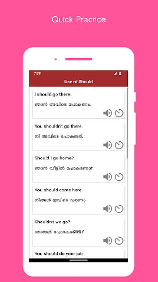 The app focuses native Malayalam speakers who like to speak English for expressing their ideas. Malayalam Spoken English app comes with wide variety of features including learn and practice method. It will help you to understand the basic building blocks of English language. The app brings all regular stuffs for learning a language like Tenses, Modal verbs, Verbs, Nouns etc. Besides you will get an opportunity to get the correct pronunciations of sentences using sound engine. The practice method option translates English sentences to Malayalam Language.