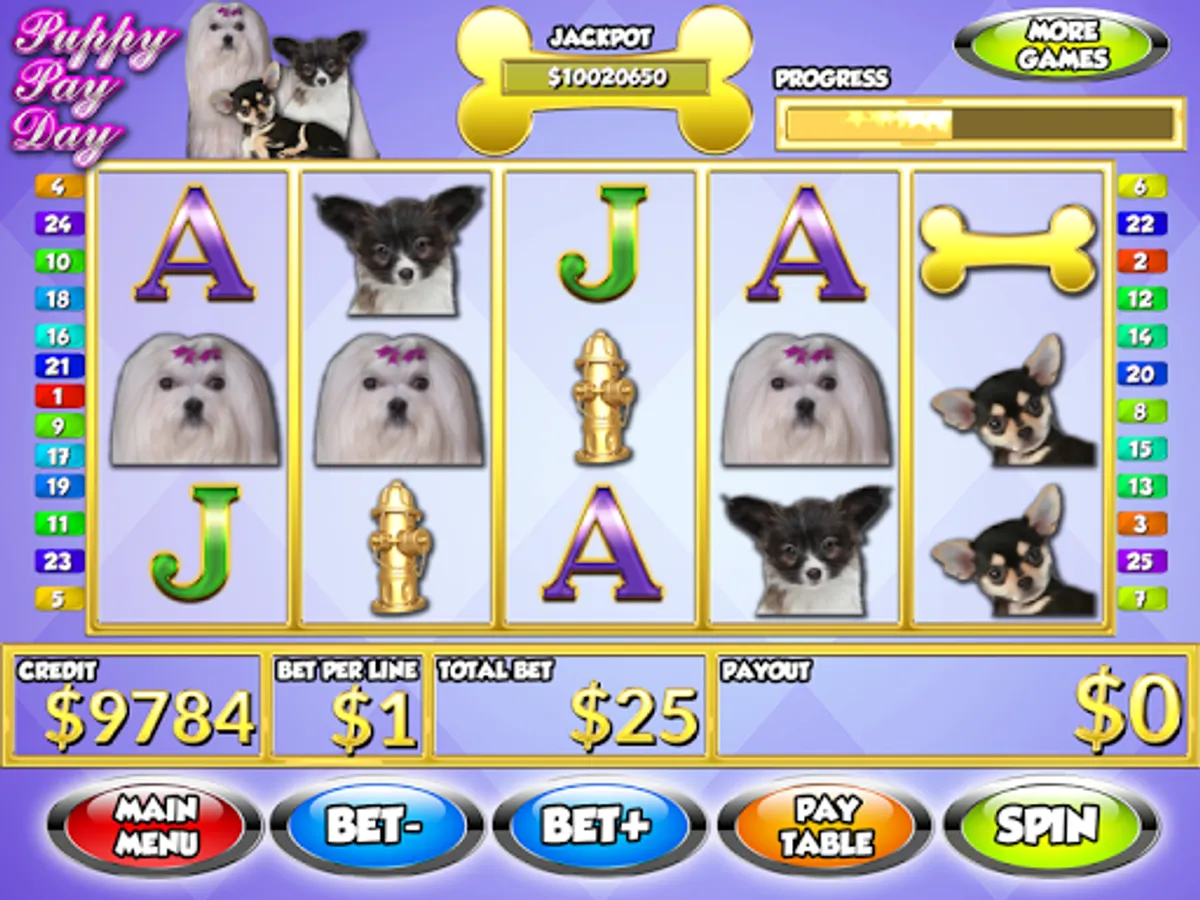 Come and try your luck and with Puppy Pay Day!, the brand new Vegas Casino Dog Slot Machine from Big Lucky Win and win a Virtual Fortune!