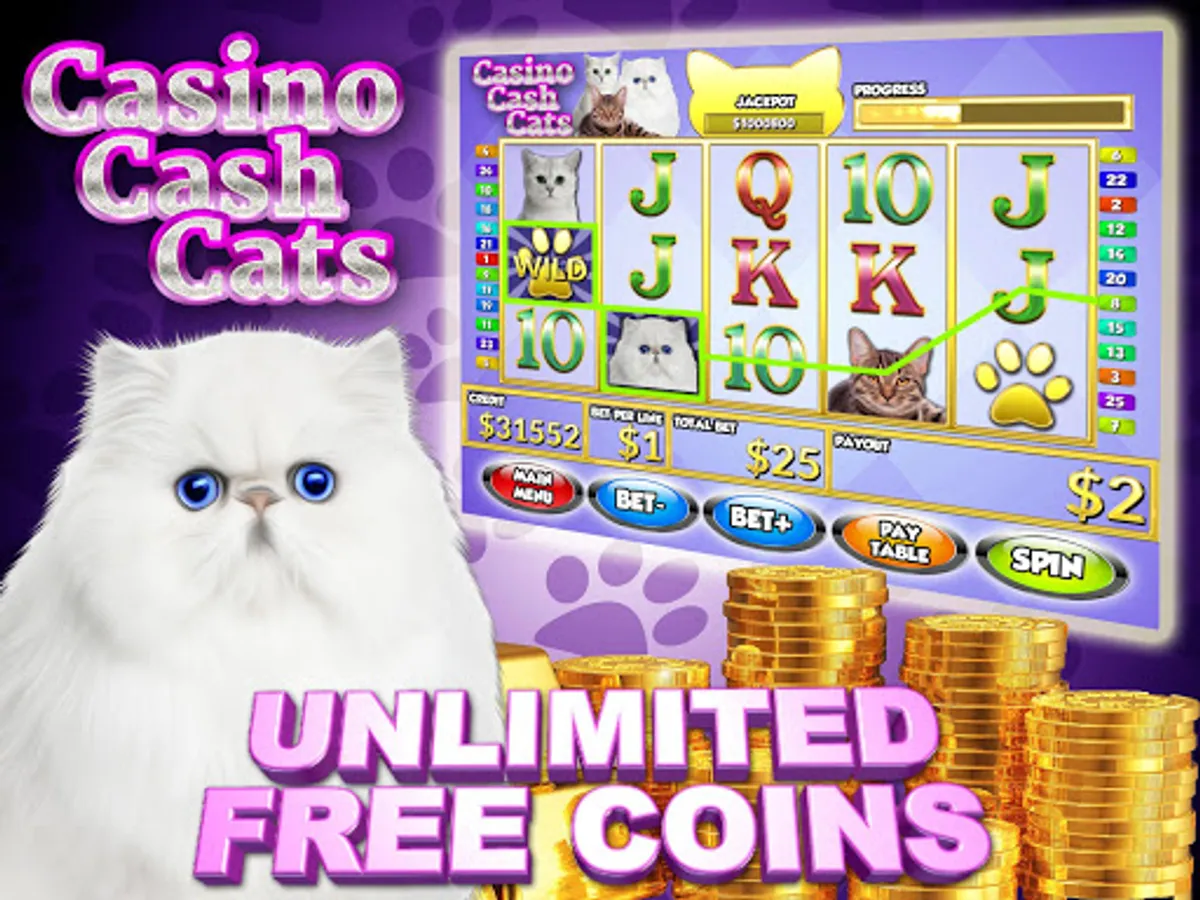 If you have a cat and love cats then this is the purrrfect slotsfree with bonus slotss bonanza! Download this diamond casino cat slot machine and getting spinning those lucky diamond reels. There is a cash box prize to be won now if you love pokies in this bestfree and most purrrfect Diamond Casino Cat Slots Machine game there is! Its not hit and miss, you will surely win big on this kitty vegas slots machines diamond casino reels game!