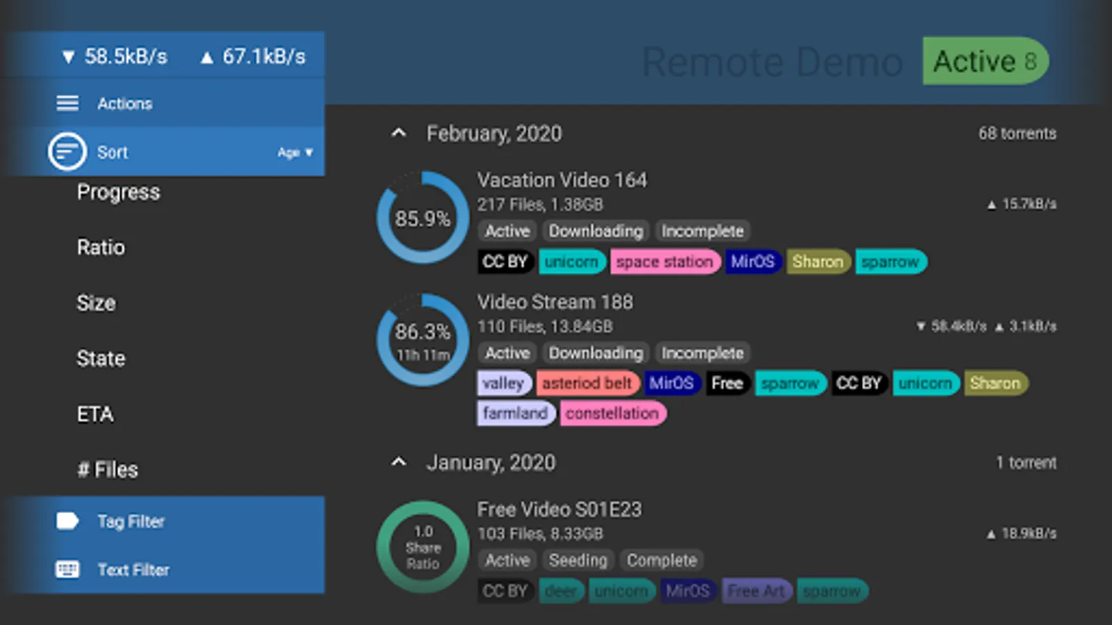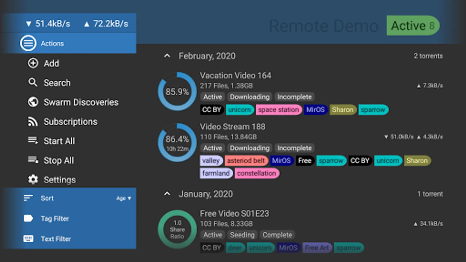 ★ Control other BiglyBT, and Transmission RPC compatible desktop torrent clients