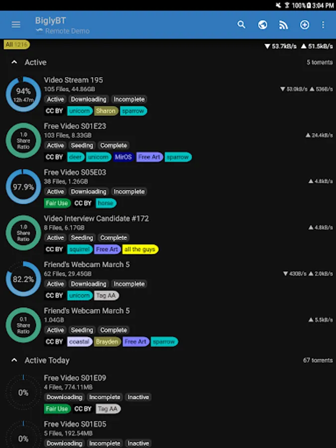 BiglyBT is an ad-free, fully featured open source torrent client and remote control app, optimized for phone, tablet, Chromebook, and Android TV.