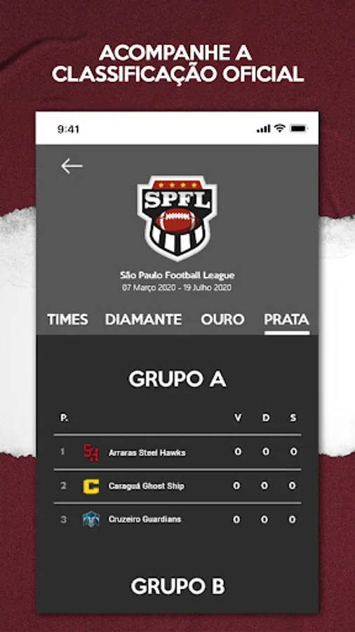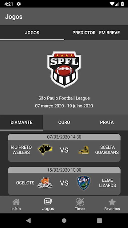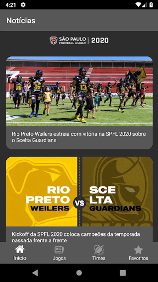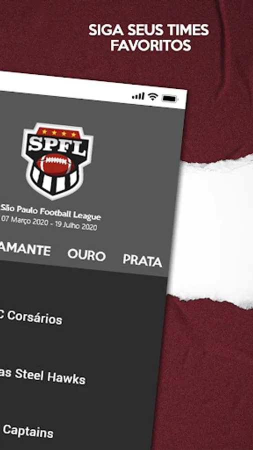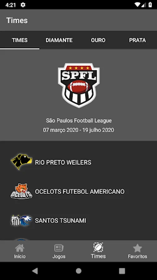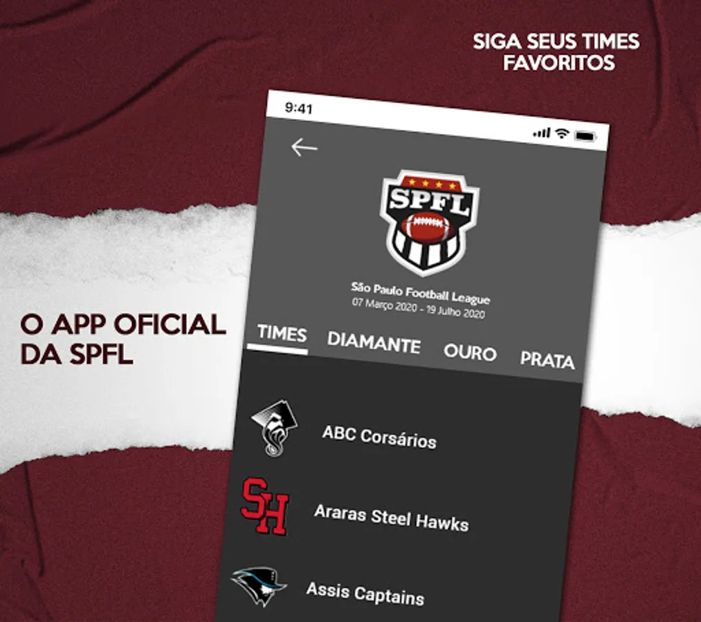 Application of the FA Manager Platform - The Largest American Football platform in the country developed by Bigmidia.