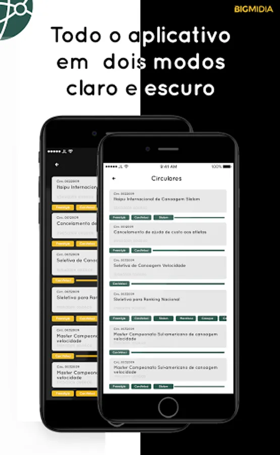 The app is part of the complete sports management solution (SGE) developed and maintained by Bigmidia.