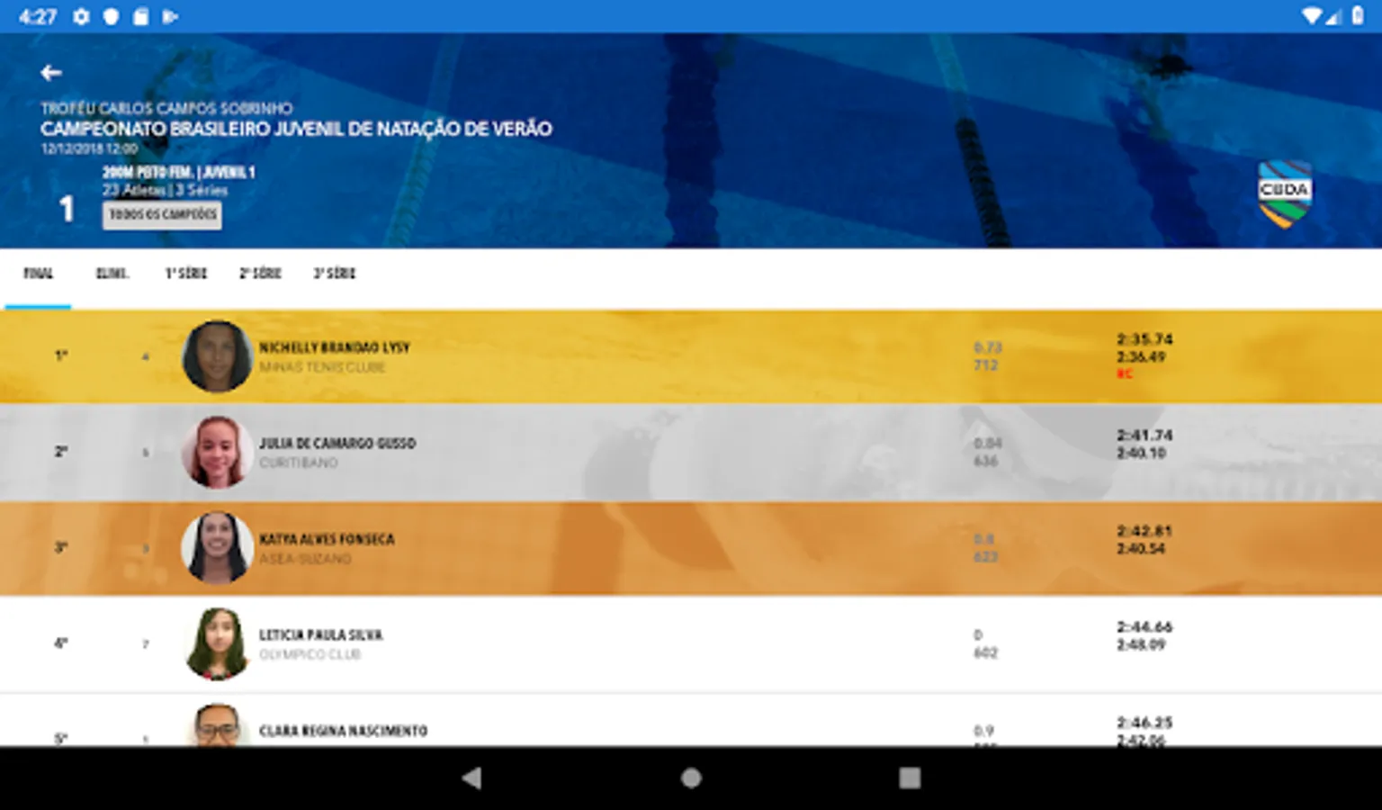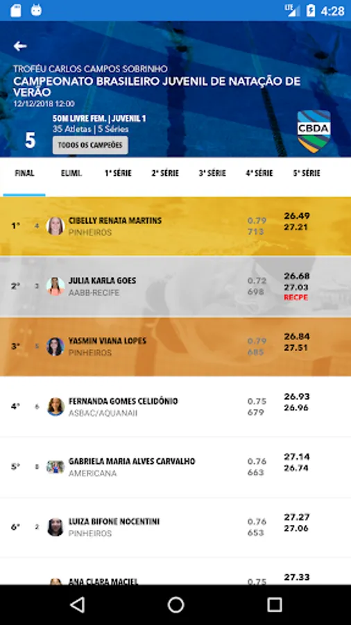 Complete Results of all competitions held in the country;