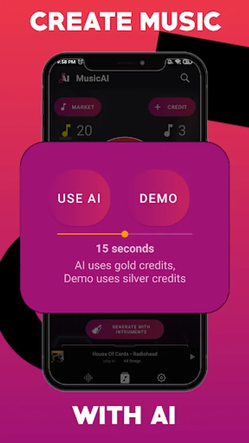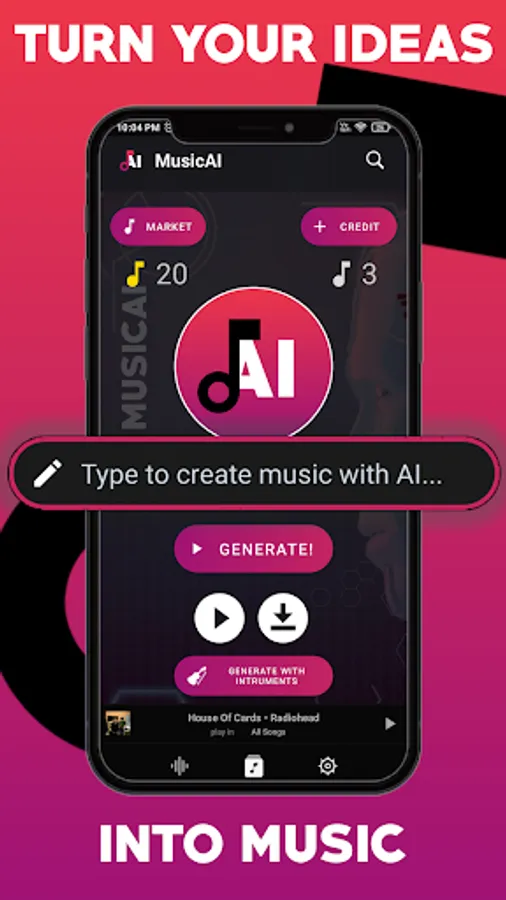MusicAI is an application that generates completely new music with artificial intelligence. You can easily make music with just one button for only you. Be the first listener to your AI-generated songs!