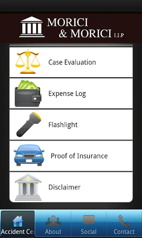 The Morici & Morici, LLP app can provide assistance if you've been involved in an accident.