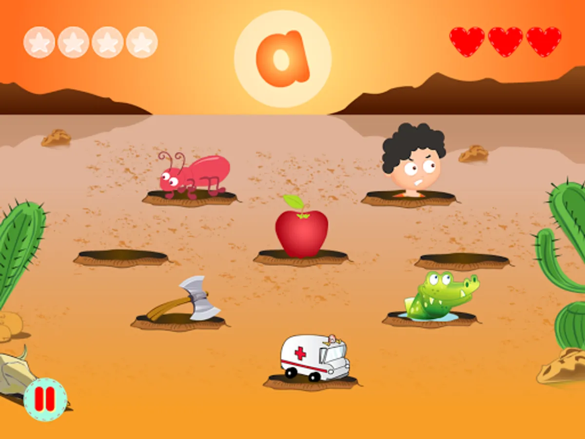 • 6 juegos con diferente nivel de dificultad para practicar vocabulario y sonido de las letras: