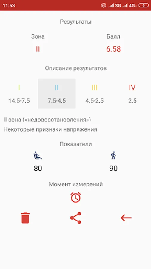 7-5 points - II of the zone ( "nedovosstanovleniya" - before the start of classes, "low load zone" - at the time of completion of the class) - some signs of stress in the work of the functional system;