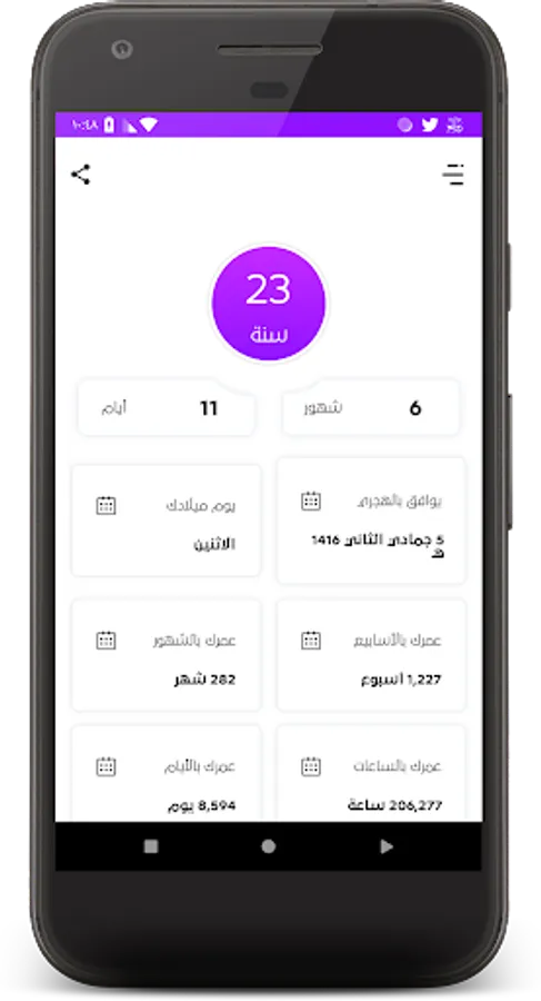Application calculate my age works on the calculation of age in years, months, days and other vital information such as vital pumping blood and eyelash eye .. ..