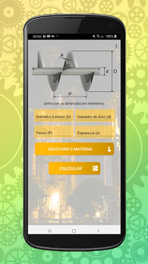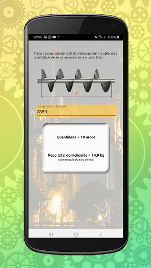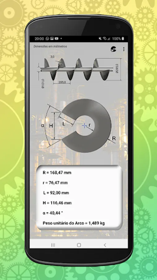 This application was developed to calculate the dimensions of the circular crown arch needed to manufacture the drag structure of a Helical Conveyor also known as Screw Conveyor. It is a very useful support tool in mechanical engineering, mainly in the industrial equipment manufacturing and industrial maintenance segments. The application has a simple and very instructive layout for the user.