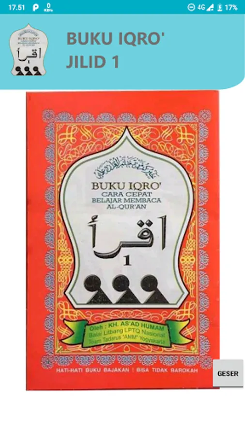 Iqro is a textbook used by Muslim communities in Indonesia and Malaysia to learn to read Arabic letters and pronounce the language. This book was compiled by As'ad Humam with "Team Tadarus AMM