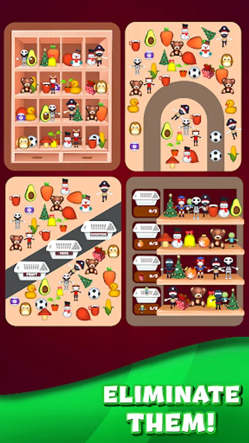 You just blow your mind to find and match identical 3D objects to make them pop among a tangled mess. When all 3D objects on the ground or even on the shelves are collected before the time is over, you can pass the current level! 🏆 This match 3D game can help you to strengthen your memory and boost your engagement. Let’s try and become Match 3D Masters!