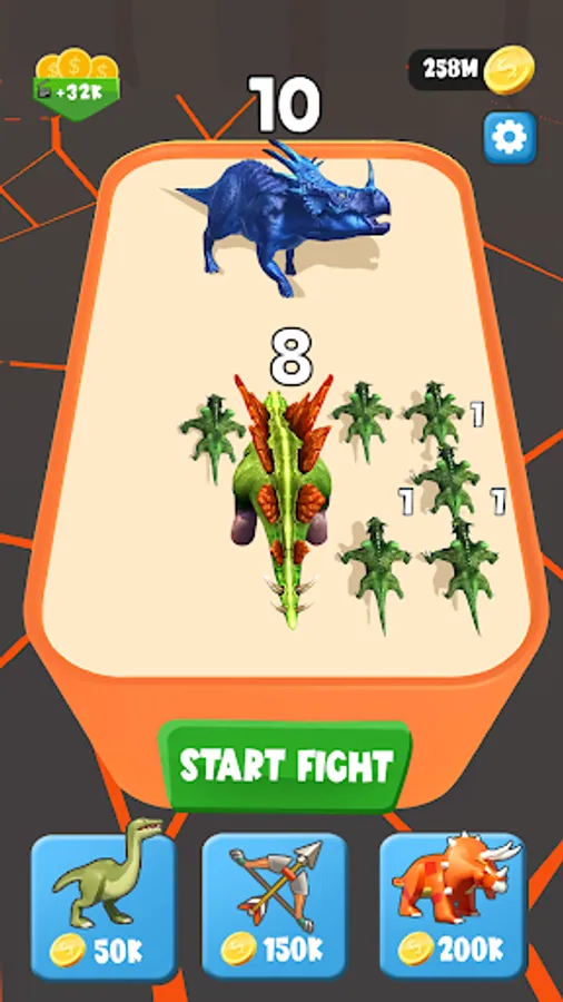 Merge to evolve, Build your powerful team with Tyrannosaurus Rex, Triceratops, Velociraptor, Stegosaurus, Spinosaurus , Archaeopteryx,.. & be the 1% of gamers who complete the task and unlock all of the creatures. Are you ready for this challenge???