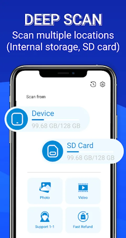File recovery app scan all the internal and external memory of your phone to restore files.