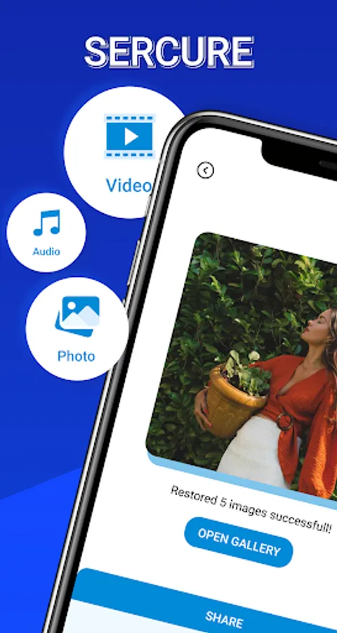 This application can restore videos, photos and audio to a folder of your choice, you can easily backup and share files.