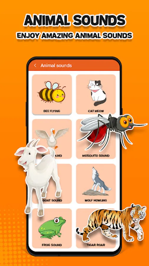 Let's imagine we are in the zoo with many sound effects of animals including dog barking, cat meow, tiger roar, mosquitoes flying, horse neigh.