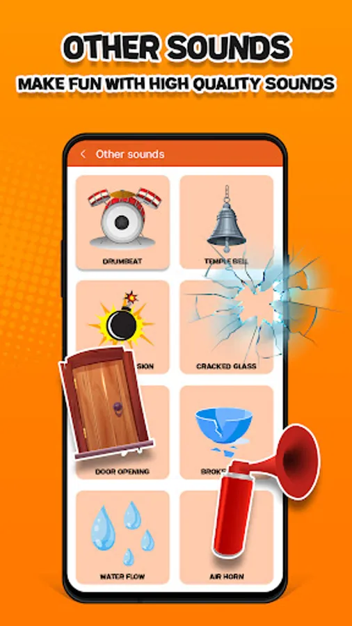 We offer nature sound, cracking sound, and instrument sound in prank sound effects for users to have multiple choices of prank soundboard.