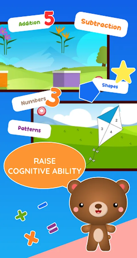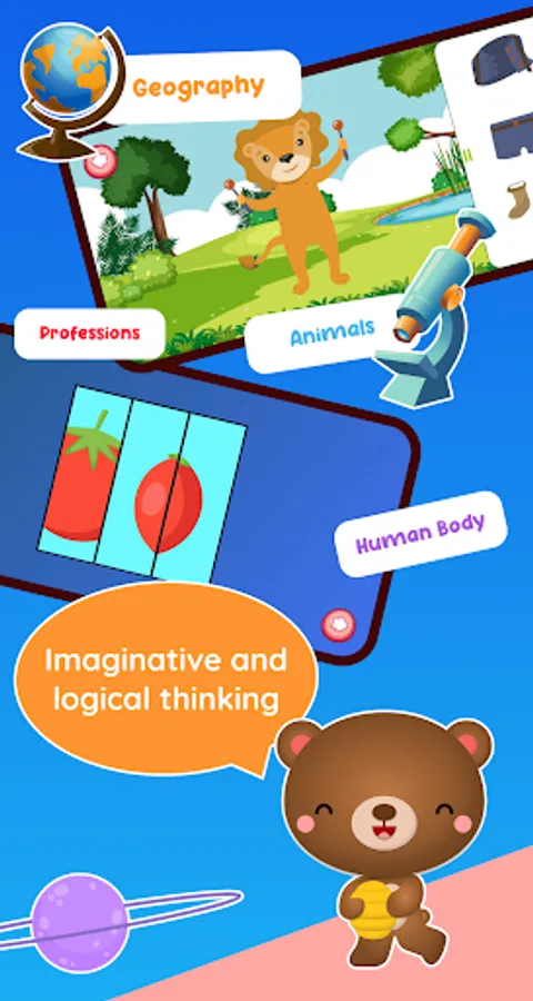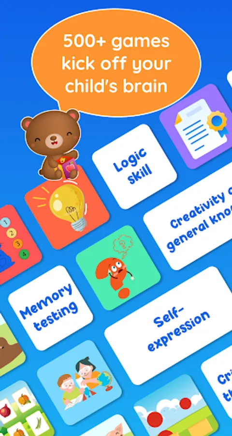 In puzzle games, there are pictures of cute characters and animations that make children enjoy lively adorable characters and funny interactions.