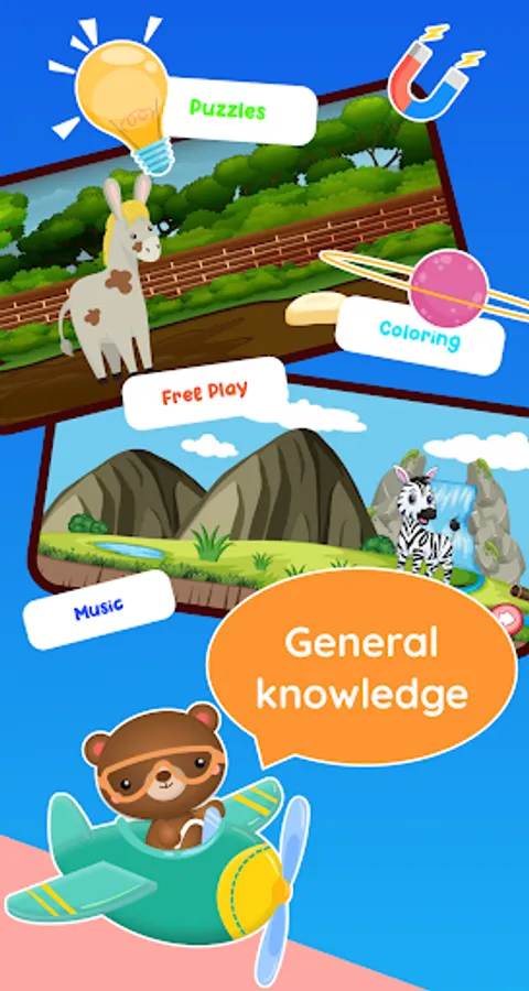 With a variety of categories to choose from: Farms, animals, objects, insects, vehicles, etc. Games help kids learning about animals, numbers, arrangements, shapes, colors. Various picture puzzles, family games that are educational and engage with children when parents are engrossed in work.