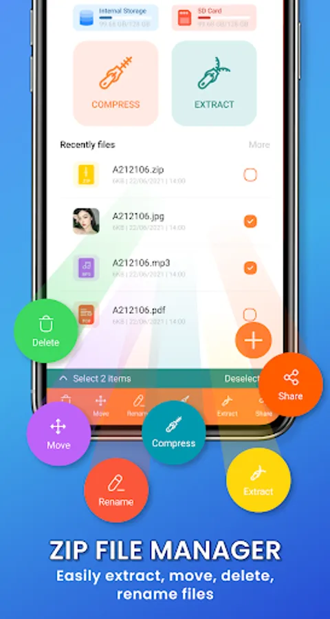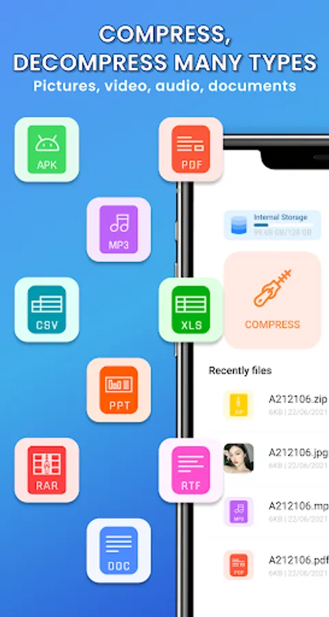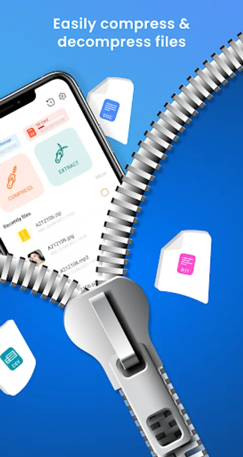 Zip App is the best choice when you want to extract zip, rar, 7zip files. Use app to compress files, decompress files quickly, ensure files are not corrupted or damaged during decompression on your phone.