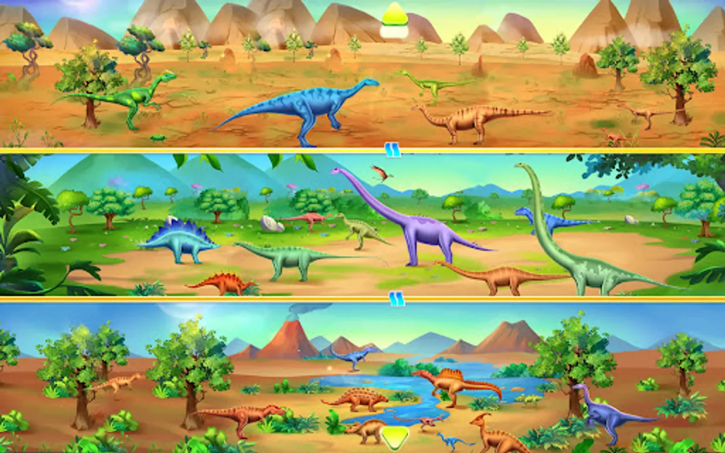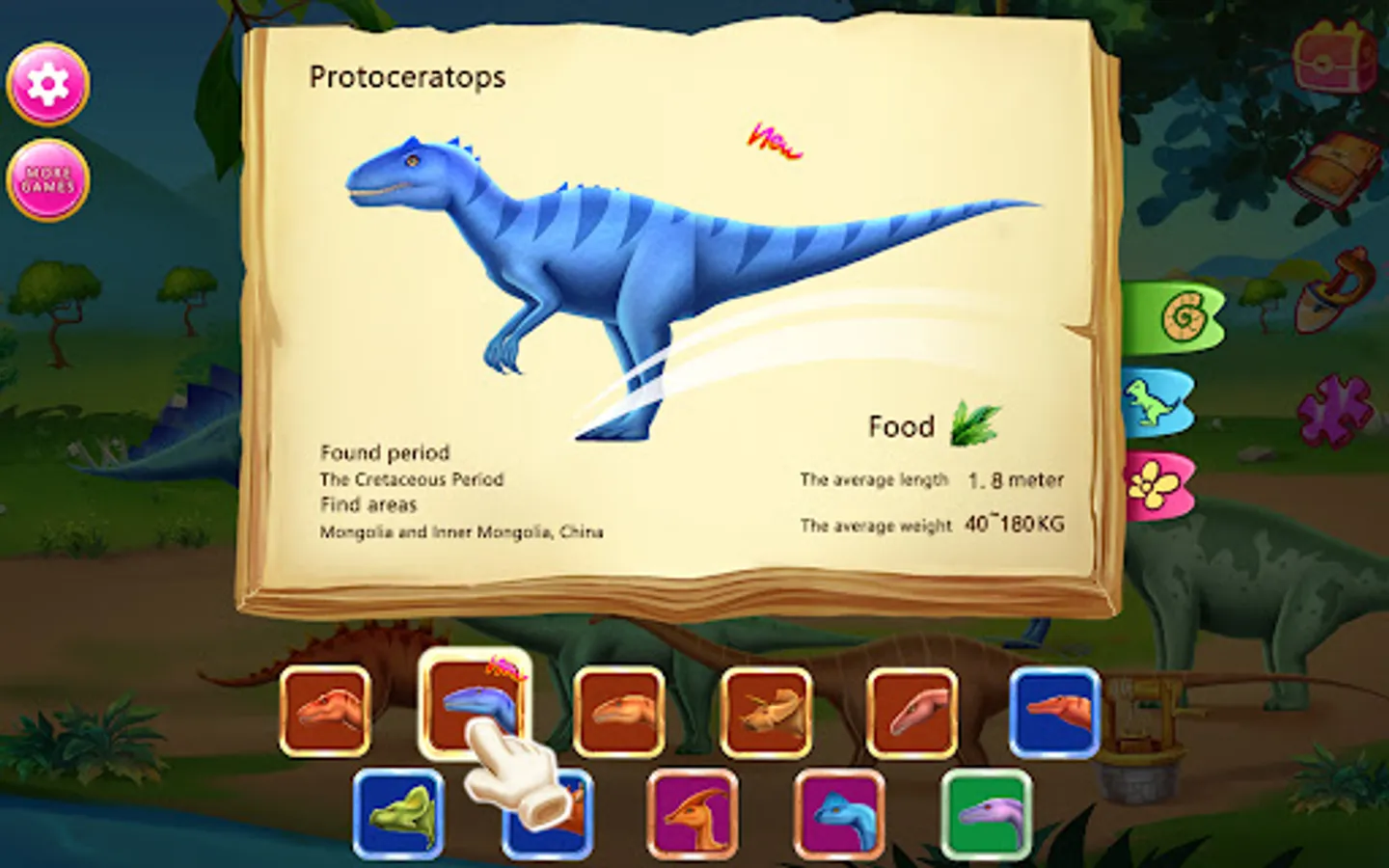 You can choose different periods to dig, such as the Triassic, Jurassic, Cretaceous period, to trace grasslands, forests, deserts and other landforms, and combine natural science with dinosaur archaeology. There are two different types of dinosaurs for you to choose from, one is carnivorous dinosaurs, such as "raptor, Eraptor", one is herbivorous dinosaurs, such as "plate dragon, Triceratops”.