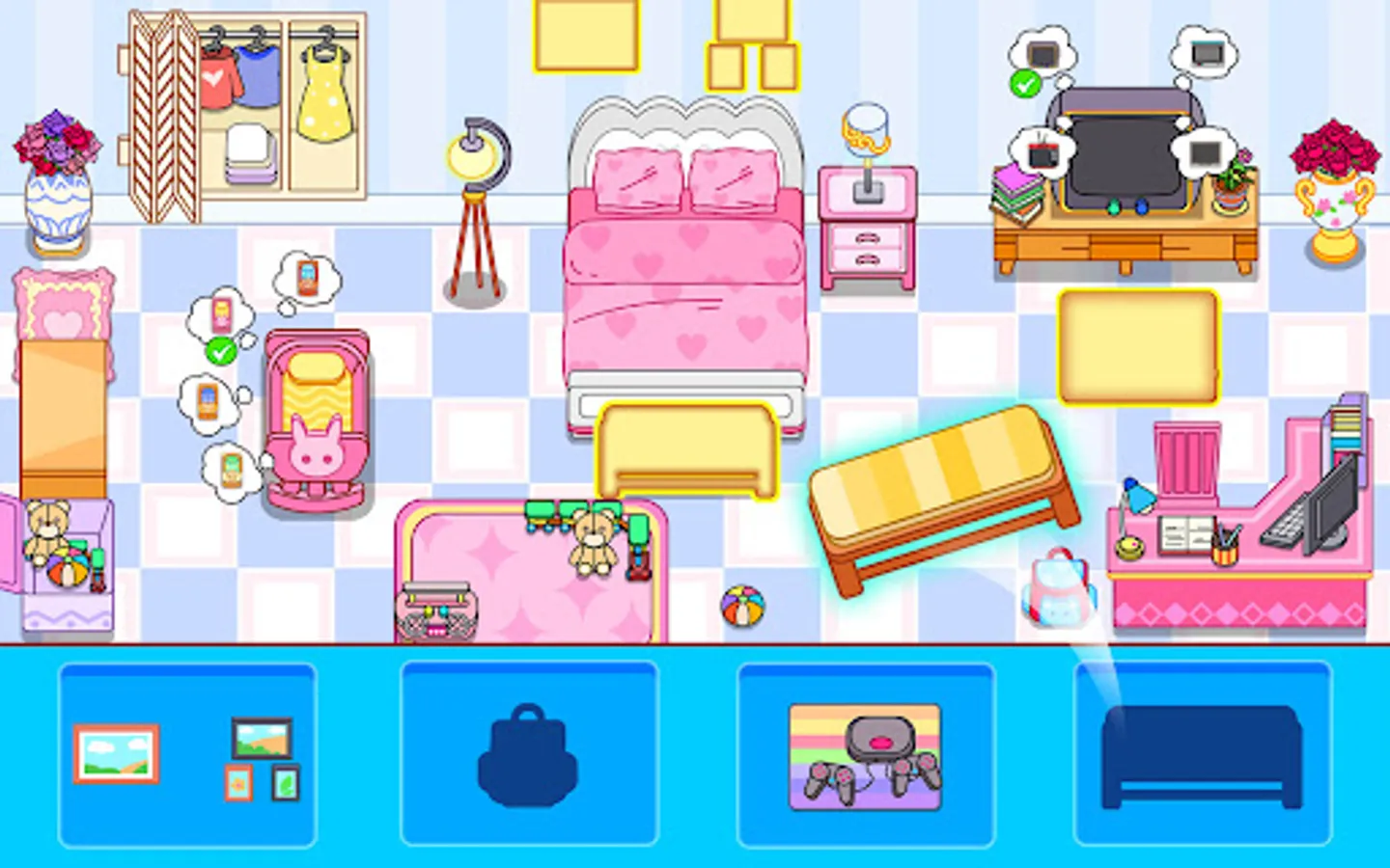 You can quickly repair and clean the room, just click on the corresponding location, select the corresponding tool to drag, and click to repair it.