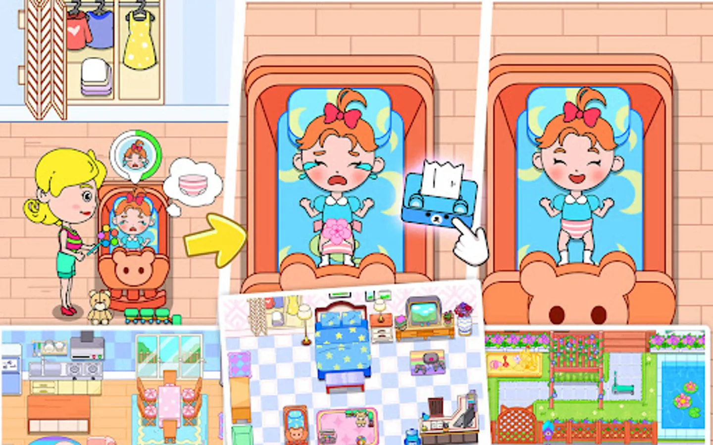 Always pay attention to the baby's dynamic, coax the baby to sleep, play with the children.
