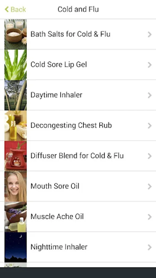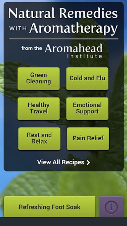 This app includes ingredients, instructions and notes on use for recipes in Green Cleaning, Cold & Flu, Pain Relief, Rest & Relaxation, Healthy Travel and Emotional Support.
