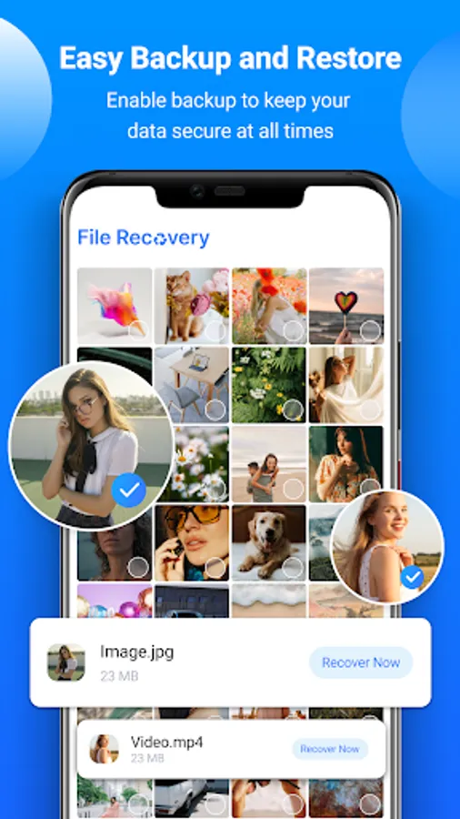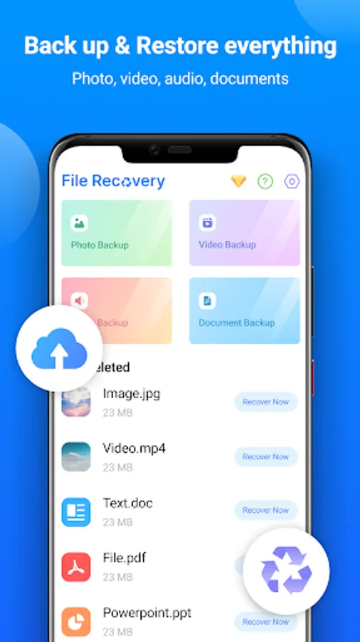 File Recovery & Restore Data is a powerful application that helps you easily and effectively recover lost files on your mobile device. With File Recovery & Restore Data, you can restore important images, videos, audios, and document files that you have accidentally deleted or lost. This allows you to safeguard and retrieve your valuable resources quickly and reliably.