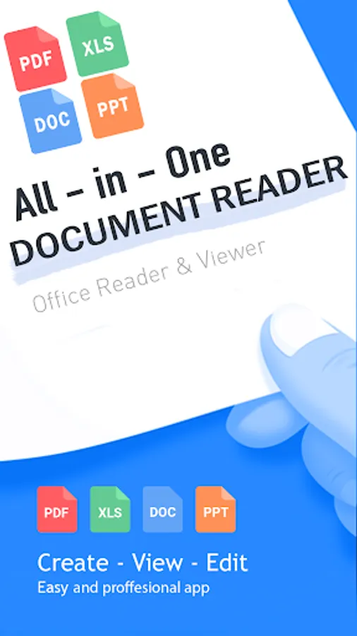 Document viewer -Office reader for android lets you easily view Word, spreadsheet, PowerPoint, Text, and PDF files, supports multiple compatibilities with office formats including DOC, DOCX, XLS, TXT, XLSX, PPT, PPTX, and PDF.