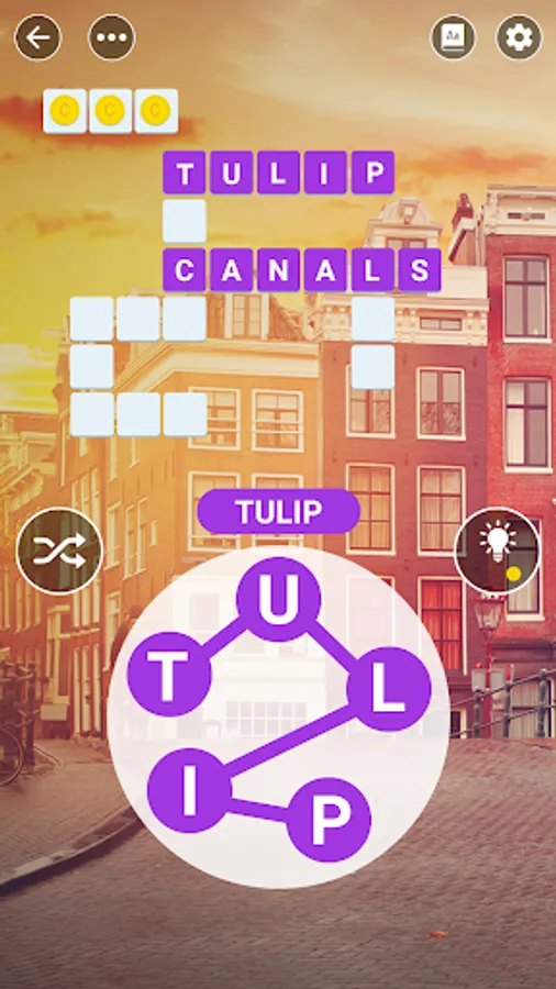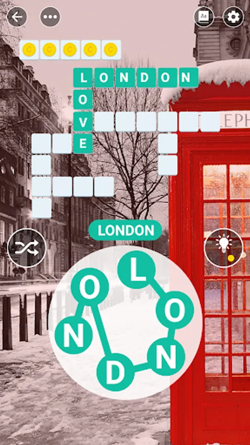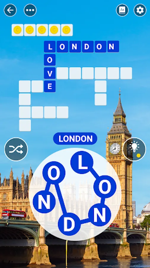 • Find words with bonus to collect more coins.