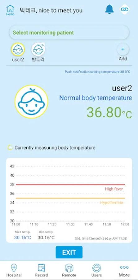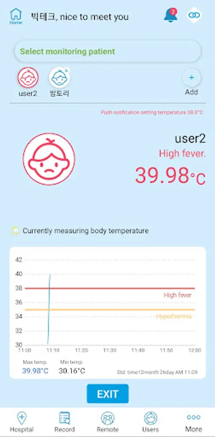 -If you set up a notification function, you can get the notification through the app when your body temperature is measured beyond the specified temperature.