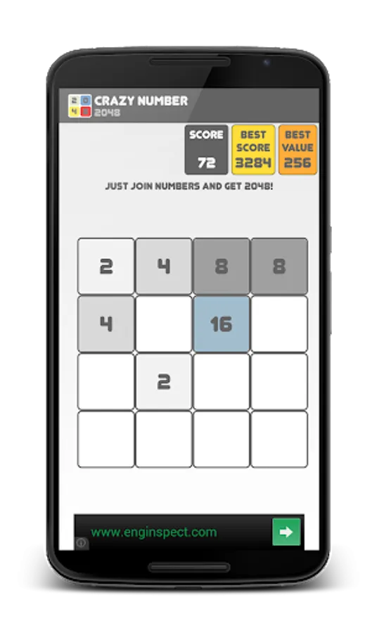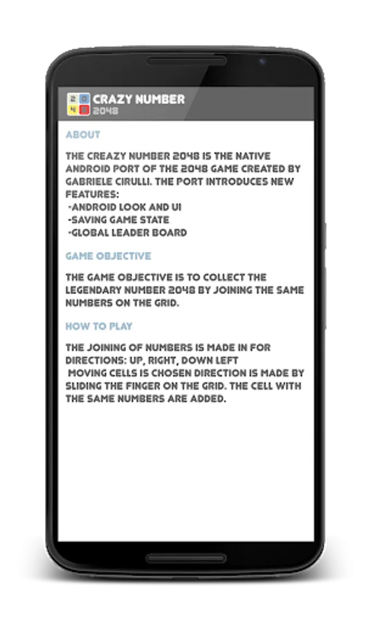 The "2048 CRAZY" is the native Android port of the "2048" game created by Gabriele Cirulli. The port introduces new features: