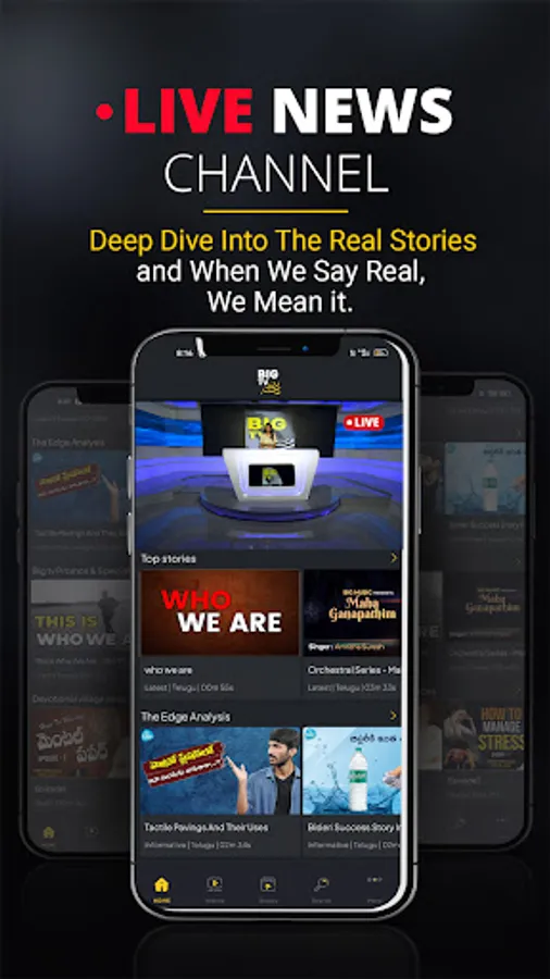 BIG TV presents objective news reports, unbiased analysis and meaningful content using state-of-the-art equipment and technology. It delivers 4K viewing experience, the latest high-definition format in television resolution. Superior internet connectivity has taken news watching to the next level. The advent of 5G enabled services has enabled audience to experience the NextGen technology. BIG TV, the 5G powered new age news channel, is all set to offer a highly immersive experiences to viewers.