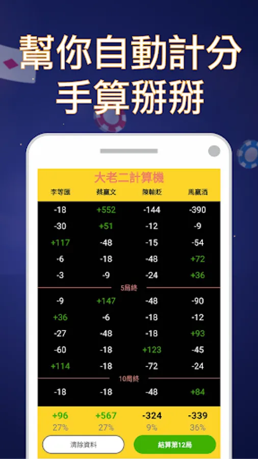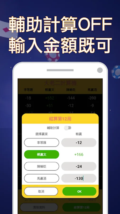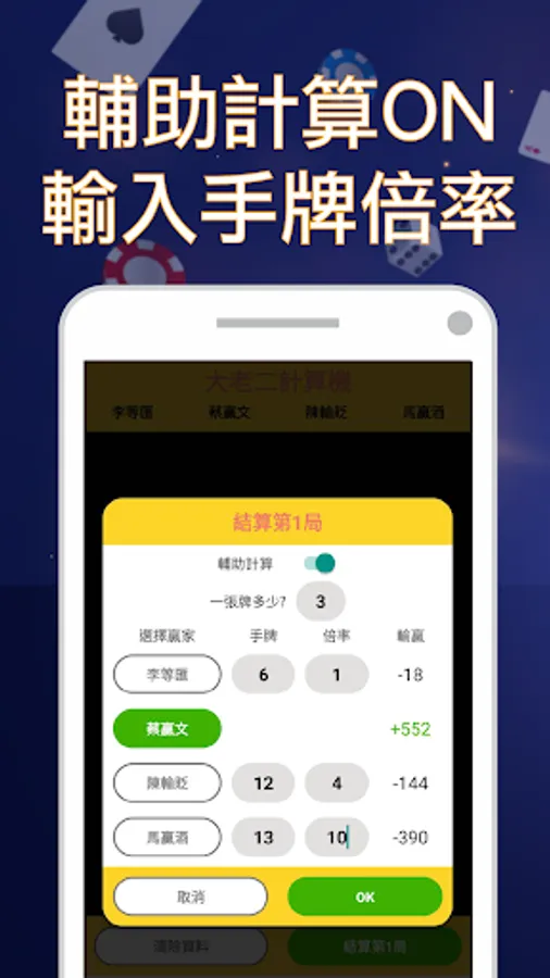 Enter how much/multiplier/number of cards a card is to help you calculate the winning or losing of each round