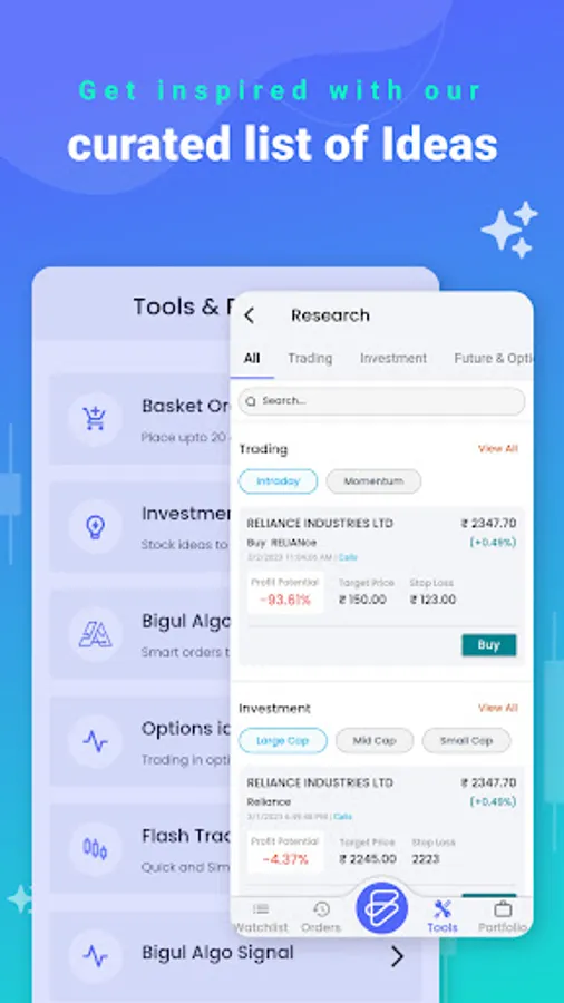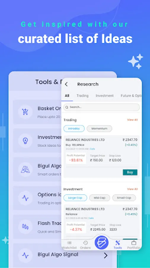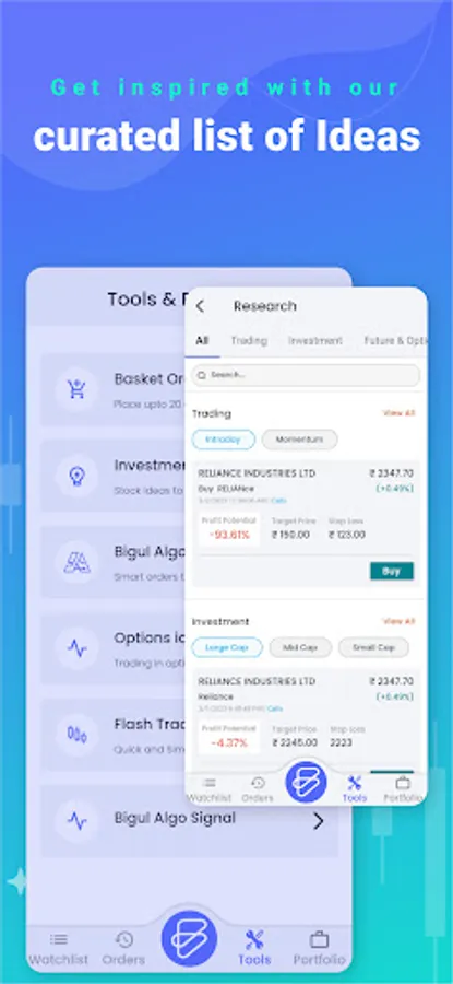 Revolutionise your trading experience with Bigul! Benefit from option and algo trading, real-time market data, customisable charts, and lightning-fast order execution. Experience hassle-free trading and take advantage of every opportunity. Download now and start trading smarter!