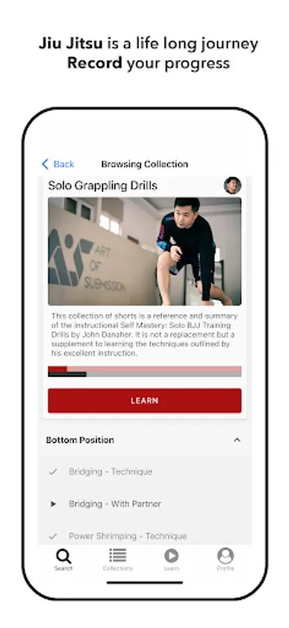 - Access to high-quality structured short-form videos to enable byte-sized, deep, learning on BJJ topics