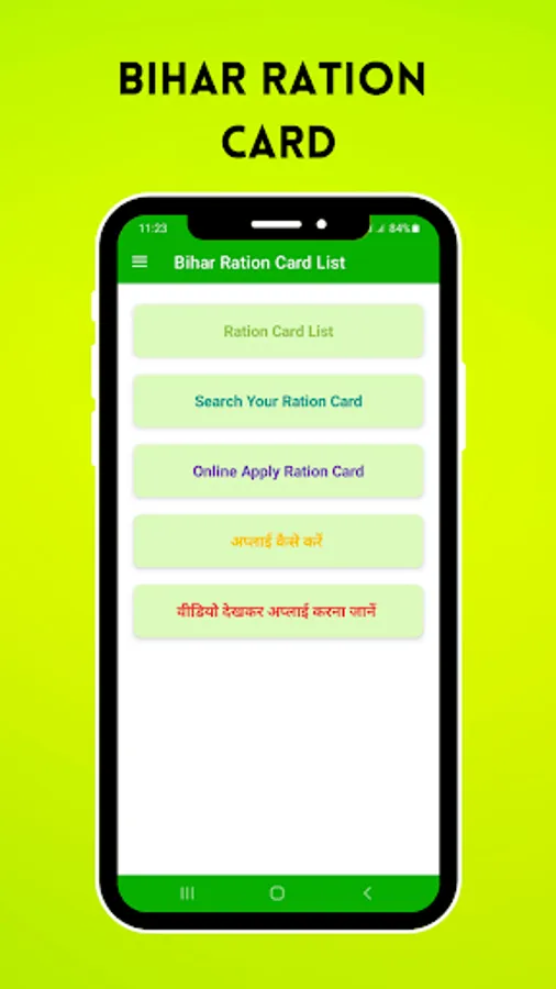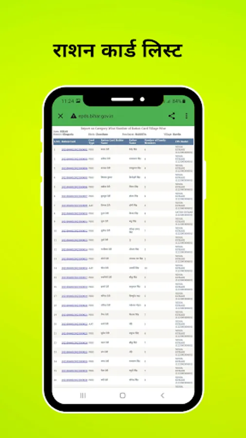 Bihar State Ration Card List(राशन कार्ड सूची) 2023 Online Search Android App is developed to find online Ration Card, BPL List, AAY List, PHH, NFSA List, Non-NFSA List, and E-Ration Card issued by Food Department Bihar State. This is an in-one android app for apl ration name list search, BPL rasan card search, ration card status, ration dealer status, fps code name, and fpsa owner location. All the information displayed in this app is loaded from the website of the Food and Supplies Department, Bihar Ration Card List 2023 - epds.